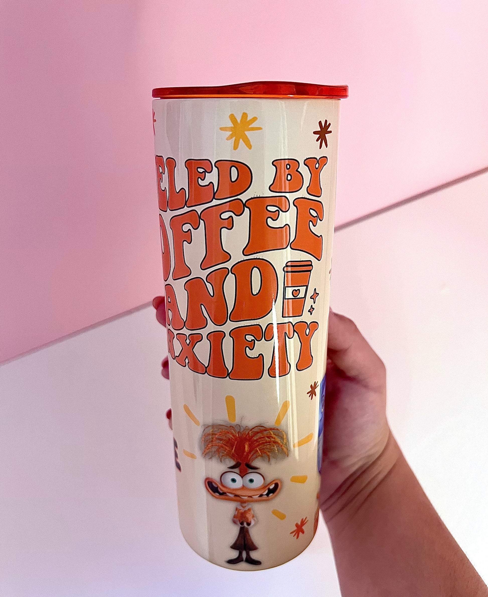Inside Out Anxiety Tumbler 20oz I’m fine Emotions, Groovy Emotional Support Skinny Cup Gift Idea