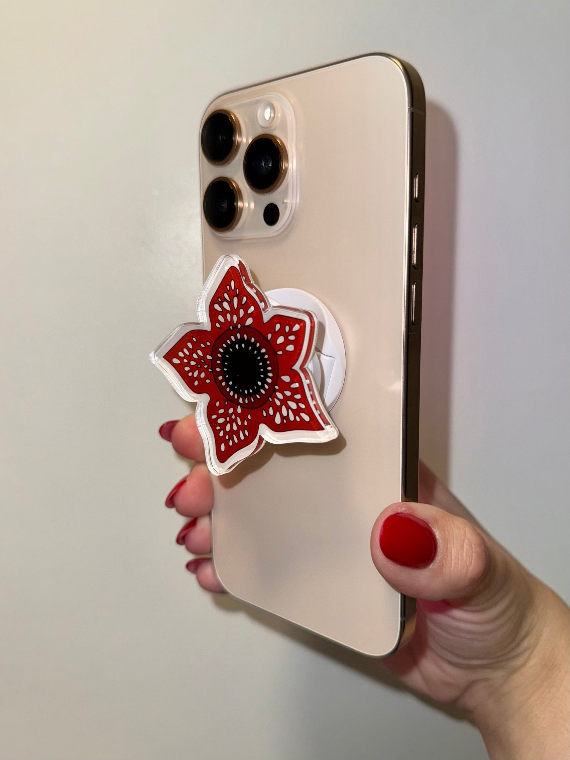 Step into the Upside Down every time you grab your phone. This Stranger Things–inspired acrylic phone clip gripfeatures a bold Demogorgon design, perfectly capturing the eerie, iconic monster from the show. Crafted with durable acrylic, it’s lightweight, stylish, and strong enough for everyday use.