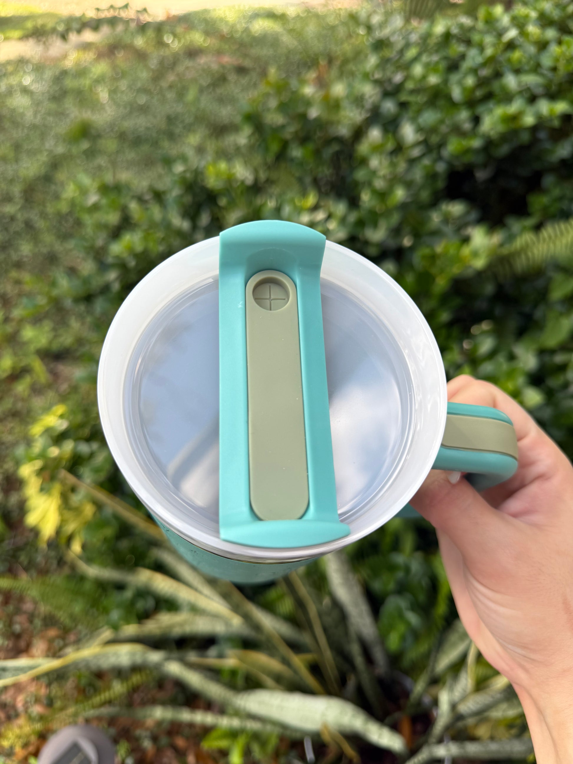 Crafted for all-day hydration, this tumbler features a comfortable side handle, insulated stainless steel body, and a secure lid + straw that keeps your drinks cold for hours. Lightweight, durable, and eye-catching—it's the ultimate everyday companion for errands, work, school, or the parks.