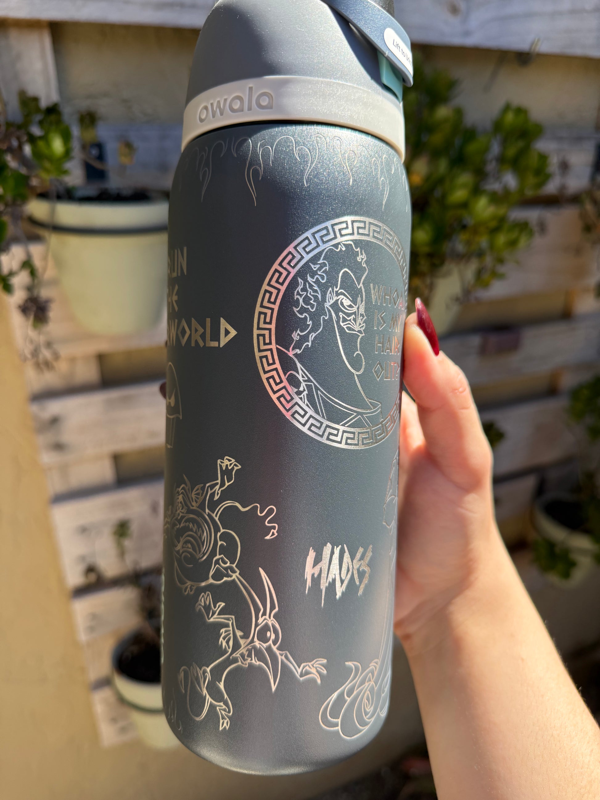 Sip like a god with this 32oz Owala® FreeSip tumbler, laser-engraved with our original Hades villain design. Whether you're ruling the Underworld or just surviving your 9–5, this bottle keeps your drink ice-cold and your vibe hot-headed.